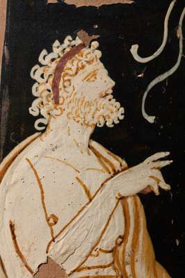 Working in one of the Greek colonies in the region of Apulia in South Italy, probably at Canosa, the White Saccos Painter decorated vases in the red-figure technique in the late 300s B.C. Widely regarded as the successor to the most famed Apulian vase painter, the Baltimore Painter. His early works in particular are extremely close in style to those of his predecessor, it appears highly likely that the Baltimore Painter and White Saccos Painter worked closely together, and that the White Saccos Painter inherited his workshop.