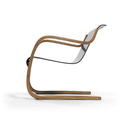 BENT LAMINATED BIRCH AND PLYWOOD ARMCHAIR .MODEL 'NUMBER 31' DESIGNED 1932. MANUFACTURED BY OY HUONEKALU-JA RAKENNUSTYOTEHDAS AB,FINLAND AND IMPORTED AND DISTRIBUTED IN ENGLAND BY FINMAR LTD.