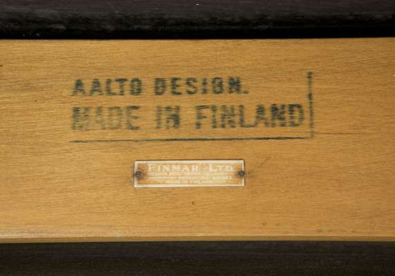 Marked with ink stamp 'Aalto design Made in Finland' and applied metal label 'Finmar Ltd.'
