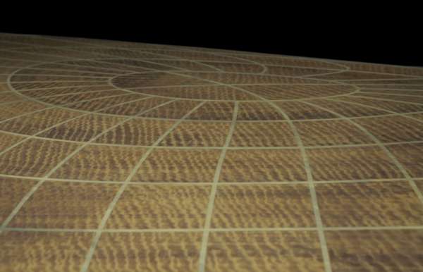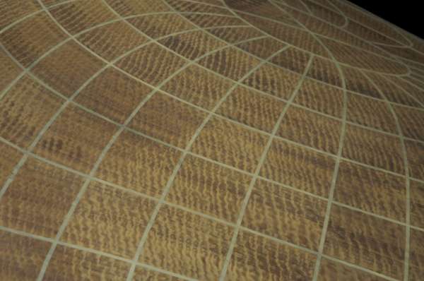 Unique work, the top of ipe (South American Ironwood) veneered onto an aluminium honeycombed substrate used in aircraft construction, the inlay a Sinusoidal Projection developed to show both poles of the globe, steel levelling feet