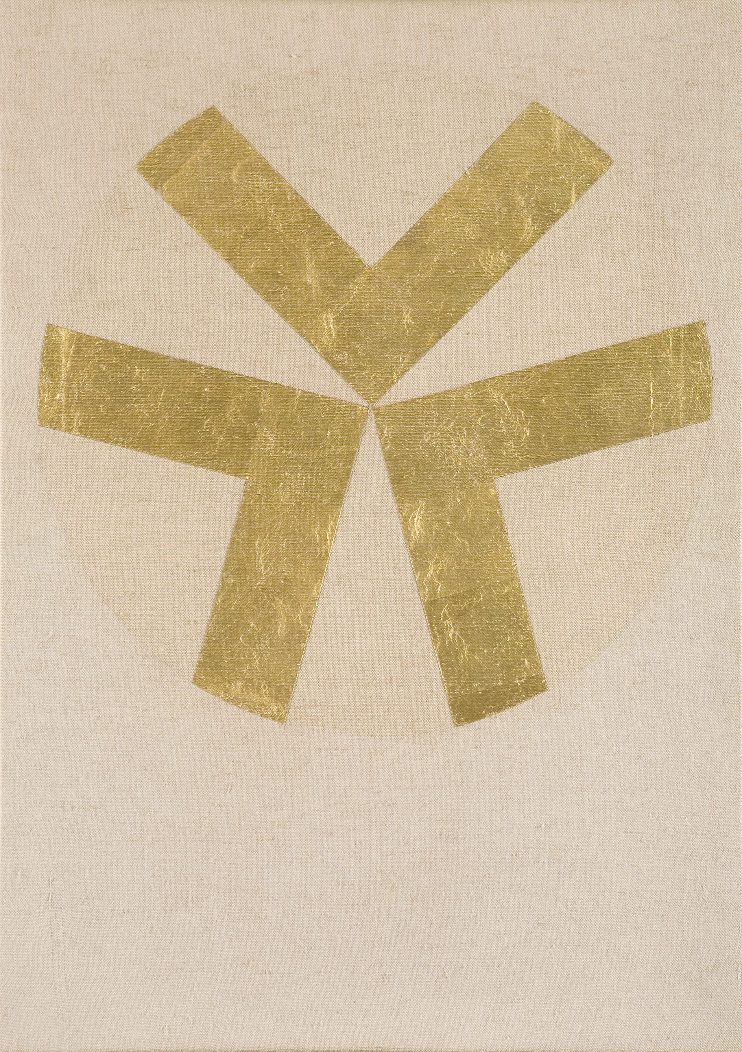 Signed and inscribed verso, tempera on canvas with gold leaf, unframed