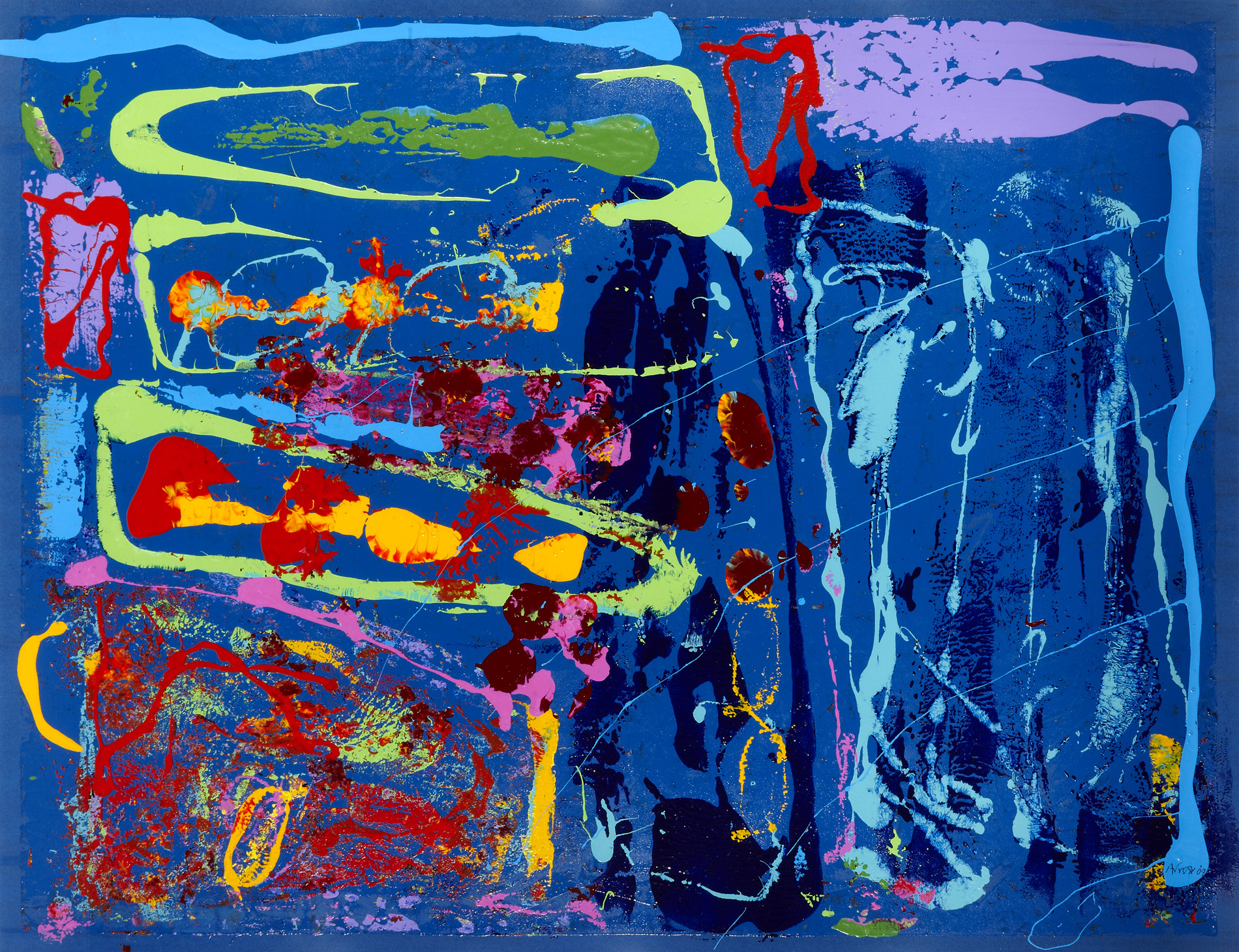 Noted for his abstract works consisting of brightly-coloured prints and collages, Anthony Frost's work has always been inspired by music. This work is from the Mascara Snake series which borrows the title from 1960s music band.