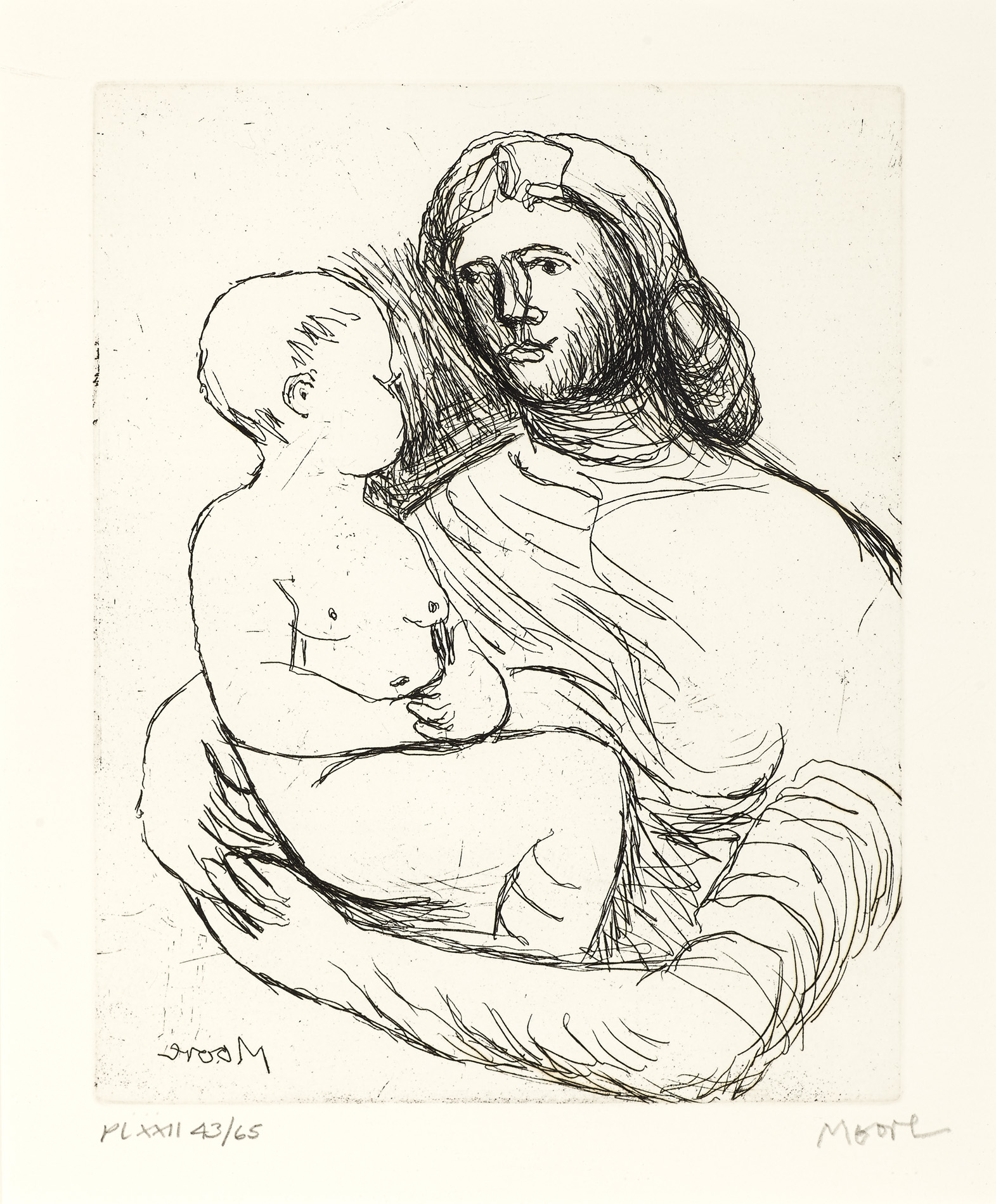 Signed and numbered in pencil, etching and aquatint and roulette, from Mother and Child portfolio, edition of 65, with 15 H.C.'s, number 43/65. Printed by James Collyer and John Crossley, London 1983-1986, published by Raymond Spencer Company Ltd for the Henry Moore Foundation