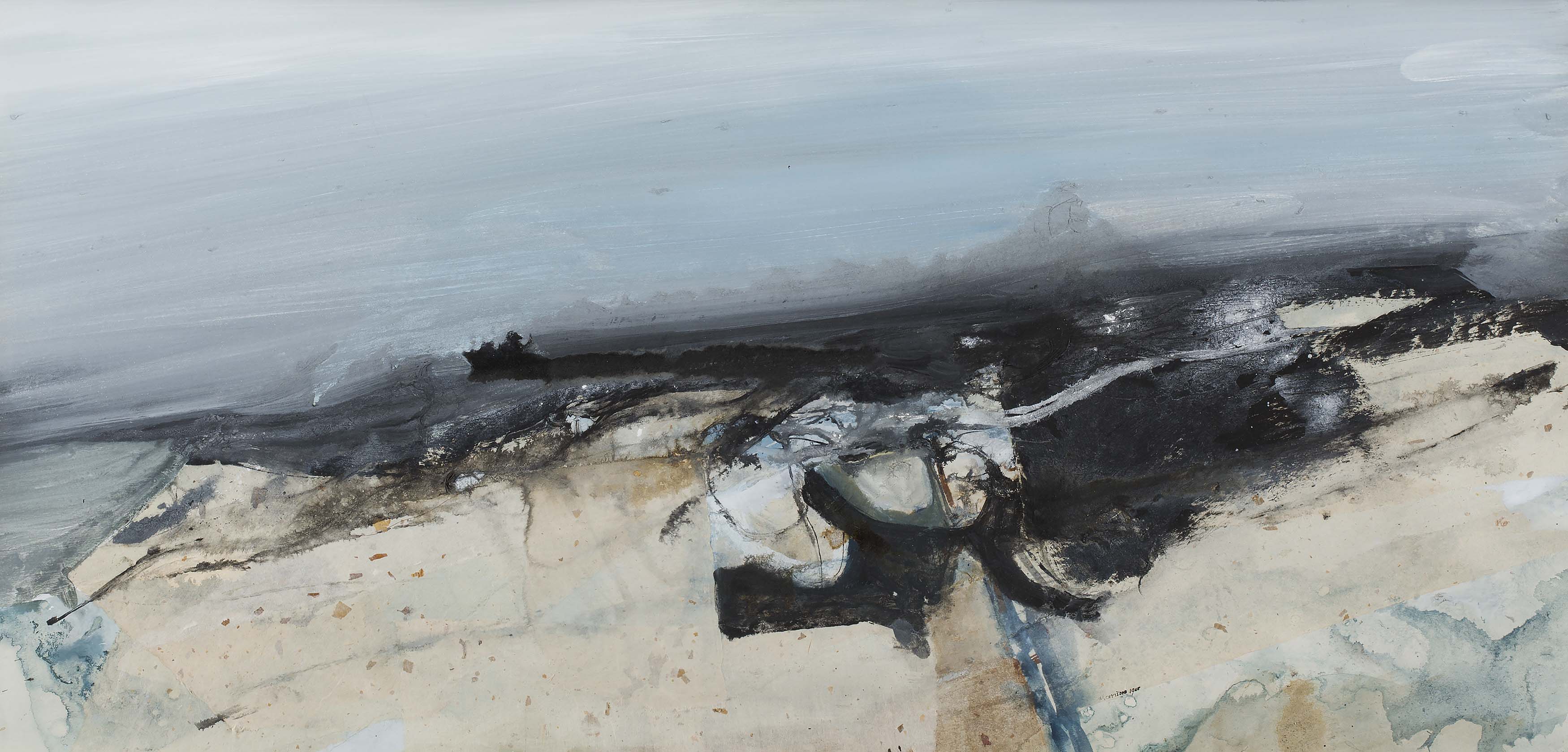Signed and dated 1968, inscribed with title verso, mixed media on paper
