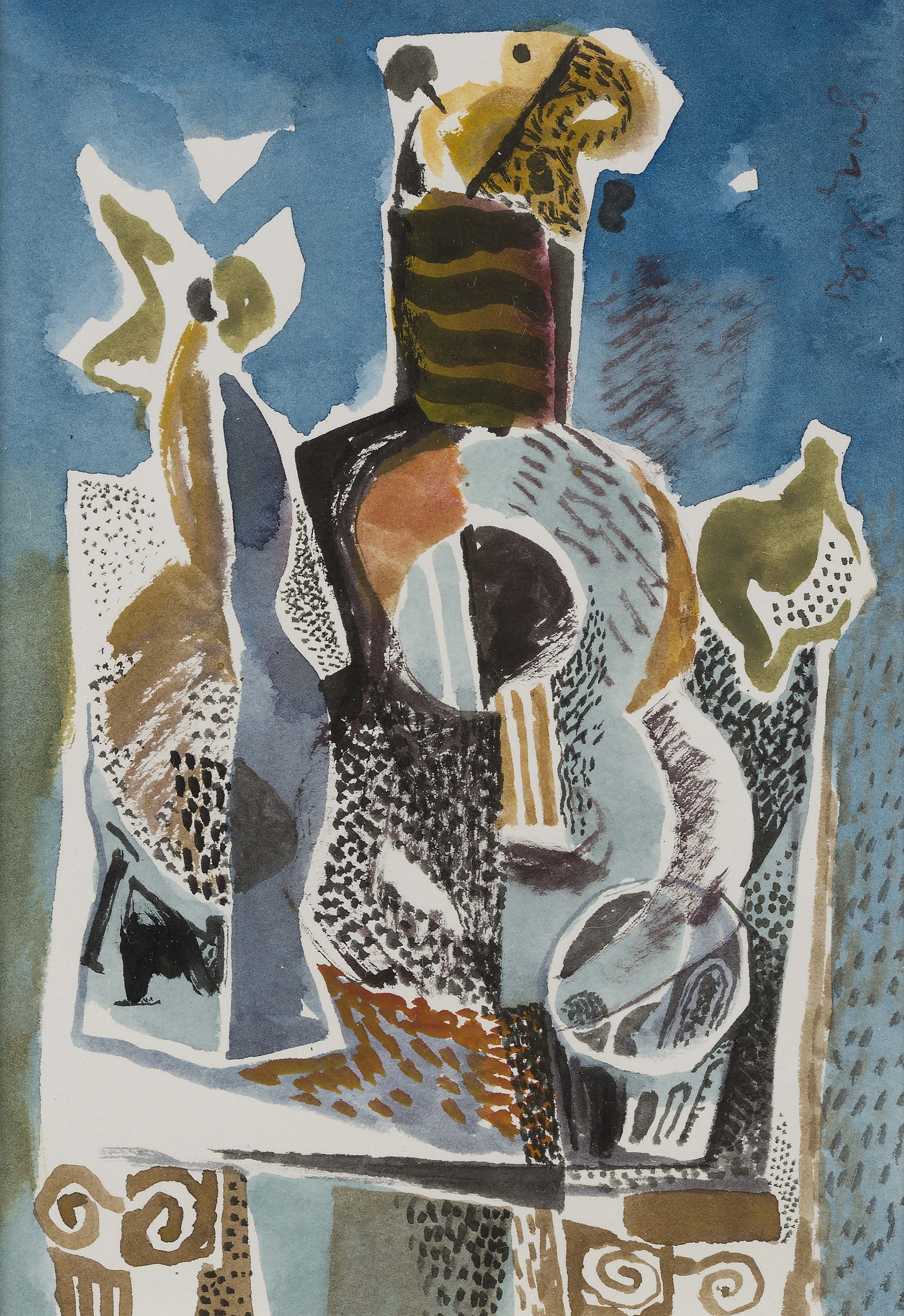 Indistinctly inscribed top right edge, watercolour