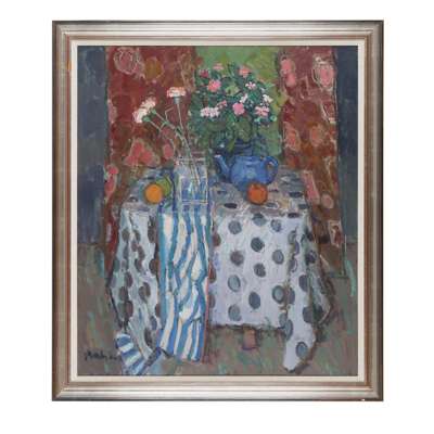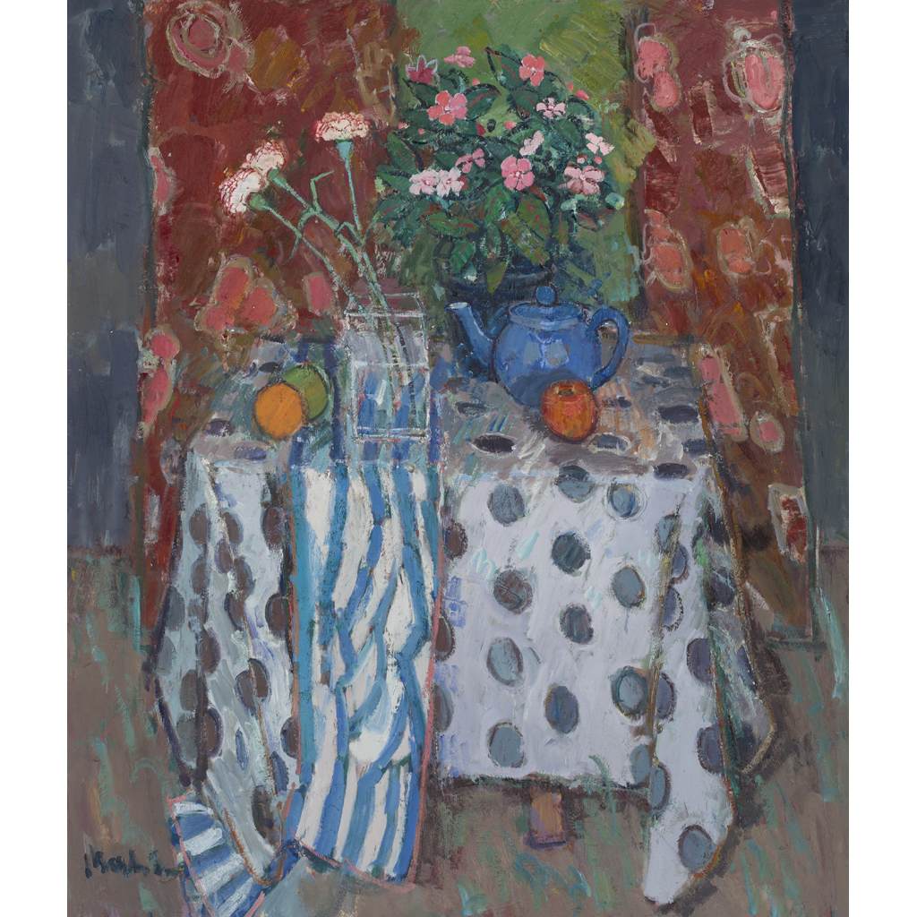 STILL LIFE WITH SPOTTY TABLECLOTH