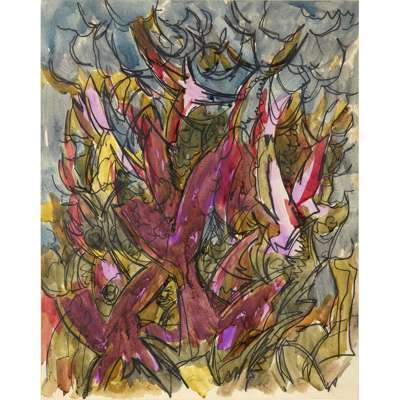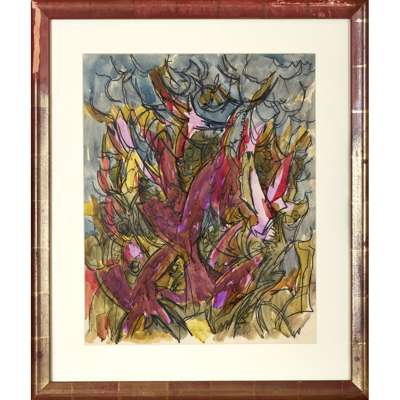 Titled and dated 'July 1953' label verso, pastel and ink on paper