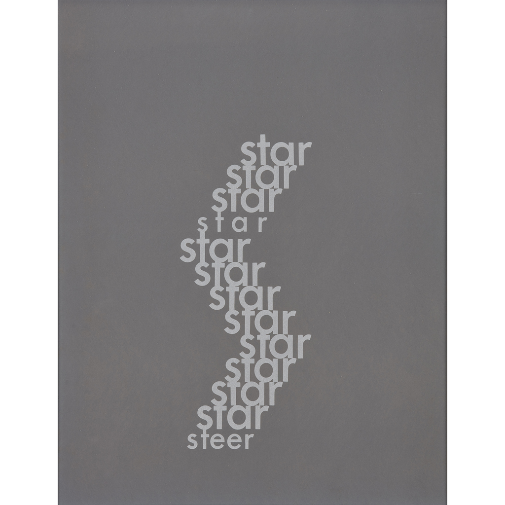 "Like many other works by Finlay, this poem takes its immediate area of reference from sea-faring. But far from being content with the vestigial representation of a natural scene, Finlay has succeeded in fusing two distinct interpretations or viewpoints in the serpentine structure of the poem. First there is the relationship of star to steersman. One particular star, singled out by its typographical reticence, displays itself up above - as if caught in the rigging of the ship. But there is also the overall structure of the poem, which suggests the winding course plotted by the steersman - seen from a star's eye view. The strength of the work comes from both of these images and from neither, since beyond the intricacies of the printed word and the metaphor of the ship at sea there is the intimation of our own course to be chosen, and our own star to steer by." - Stephen Bann. Published and distributed by Tarasque Press, The Trent Book Shop, Trent Bridge, Nottingham.