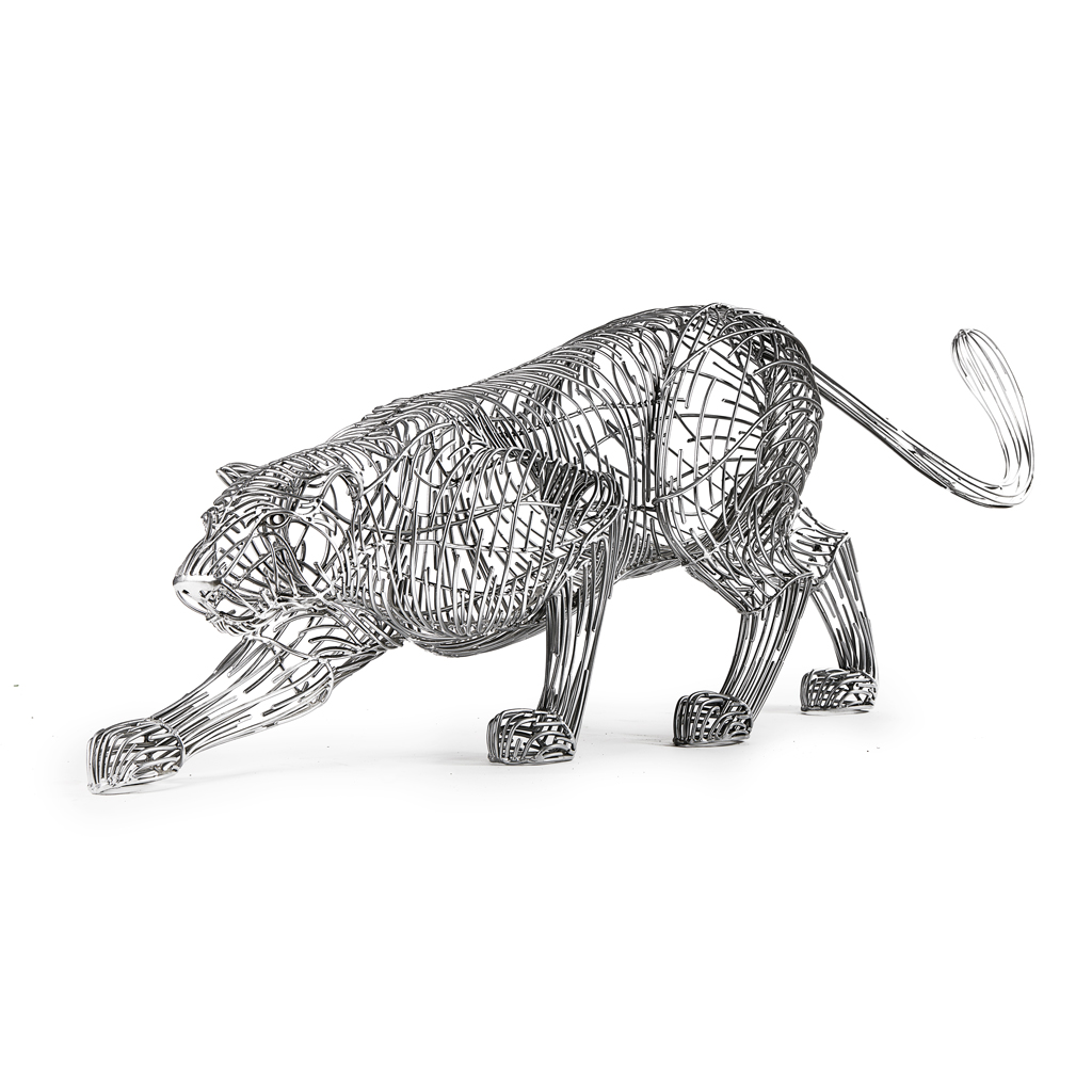 In the offered work, Scott, a Glasgow School of Art graduate who has earned commissions for sites across the globe, turns his attention to rendering a more traditionally glamourous and elegant animal, the panther. He utilises his distinctive approach to manipulating galvanised steel on a more domestic scale, while maintaining the presence and structural transparency that he is known for.