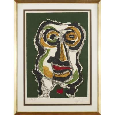 Signed and dated '75 in pencil, no. 68/99, E.A. Carborundum etching and woodcut in colours