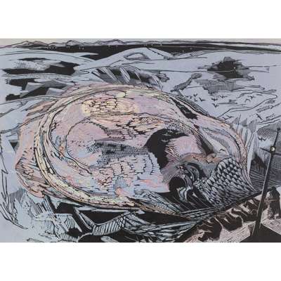Signed and dated 1955 and inscribed with title in pencil to margin, numbered 41/50, linocut
