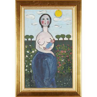 Holzhandler was born in Paris in 1928, where her Jewish parents had fled from Poland as refugees. When she was six years old, the family moved again to London. She focused on a career as an artist from a young age. She was discovered by artist Victor Pasmore in 1947 and had her first exhibition in 1954. Her work has a naivety influenced by Matisse and Chagall, and often incorporates repeated iconography, specifically mystical and religious symbolism.