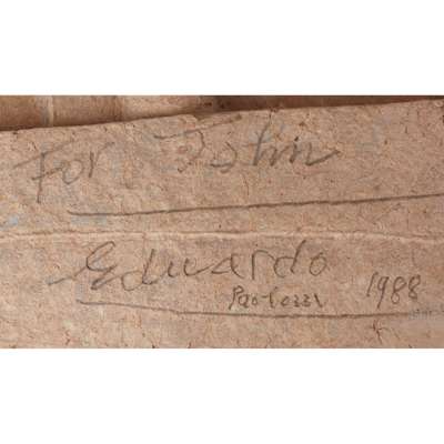 Signed, dated and inscribed 'For John, Eduardo Paolozzi, 1988' in pencil, papier-mâché