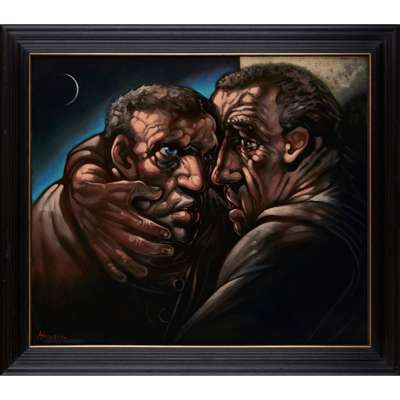 Peter Howson is arguably one of the finest and certainly one of the most controversial British painters of the late 20th and 21st centuries. Born in London in 1958, he moved with his parents to Scotland aged four and studied at Glasgow School of Art from 1975 - 1977, under Sandy Moffat. On graduating, he took on various jobs, including nightclub bouncer and supermarket manager before enlisting as a private soldier in the Royal Highland Fusiliers. In 1979, disenchanted with the army, he returned to art school and from 1981 began to show at Edinburgh's influential 369 Gallery.