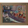 In 1987, he was commissioned to design the interiors and artworks for the ship ‘Bretagne,’ flagship of the Brittany Ferries Company. His work brought together landscapes, small scenes & still lives. The tables of the first class dining room were divided by paintings of food hanging at right angles. The originality of the scheme and the large number of works on display was received with great acclaim at the time.