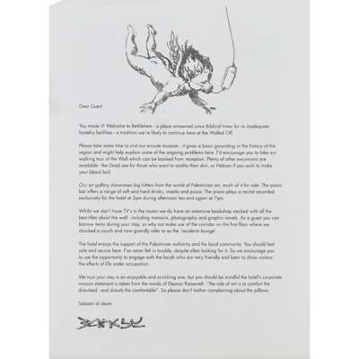 Note: The relief element is an original piece of the separation wall that divides Israel and Palestine, which is sprayed with graffiti. The Walled Off Hotel is an independent leisure facility set up by Banksy. It overlooks the separation wall. Accompanied by original invoice.