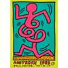 Biography: Keith Haring had a startlingly brief but intense career, spanning just over a decade. He learnt basic cartoon skills from his father, and studying popular culture such as Dr. Seuss and Walt Disney, before starting to train as a commercial graphic artist. But it was moving to New York City that set his path; there he discovered a thriving alternative art community in the streets, subways and clubs, he quickly made friends and became a part of this scene. Inspired by artists like Jean Dubuffet, Pierre Alechinsky, Christo and Andy Warhol, Haring’s aim was to create a truly public art, using his graphic skills. The subway became his artistic laboratory, when he started drawing with white chalk onto unused advertising panels that had been covered in matte black paper, becoming a familiar presence in the city and developing his distinct visual language.