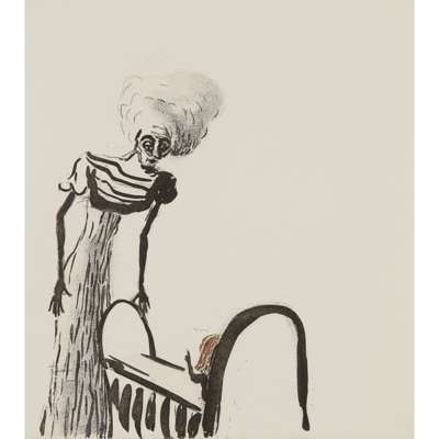Moyna Flannigan lives and works in Edinburgh. She trained at Edinburgh College of Art and the Yale University School of Art, and has taught at both ECA and the Glasgow School of Art. She has exhibited extensively internationally and her work is included in public collections across Europe. She painted in an abstract style for a period, before returning to a figurative approach around 1995. She is probably best-known for her portraits, but has recently started to work with collage elements too. Flannigan does not rely on preparatory drawings or working from models, preferring to develop her visual ideas directly on the canvas.