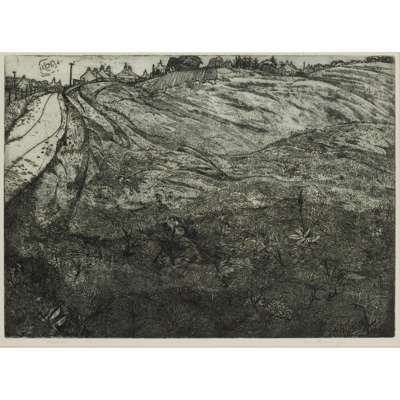 Ian Fleming studied printmaking while at Glasgow School of Art, and even managed to sell two of his prints while still a student. After graduating, when working with Charles Murray, he encountered the engraving technique, a process he would go on to become extremely skilled in. While working as a lecturer at the Art School, he was introduced to the artist and designer, William Wilson; they became great friends and a strong influence on each other’s work. In his teaching career he taught both Robert Colquhoun and Robert MacBryde, and ultimately became Head of Gray’s School of Art in Aberdeen. Fleming is known for his high-skilled technique, creating detailed etchings and engravings, often of Glasgow and the Scottish Highlands.