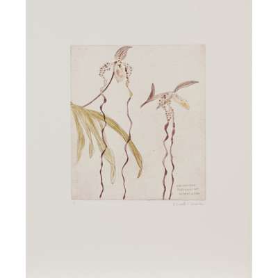 Through the 1980s and 90s, as she worked in different styles for each of her chosen genres, her botanical work became more intense and her landscapes ever simpler. At the same time, the still lifes adopted a yet more flattened appearance with no perspective whatsoever. The objects were always chosen with care: from popular toys and ornaments to Japanese and Indian prints, floating in their space, often surrounded by a shimmering aura, suggesting an individual presence and character.