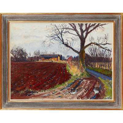 Frederick Gore was born into a creative family, his mother, Molly Kerr was a dancer, and his father, Spencer Gore, a painter and president of the Camden School Group. His personal early ambition was philosophy, but once at Oxford, it was drawing and painting at the Ruskin School of Art, which captured his attention. He then trained at the Westminister School of Art under Henry Tonks. Following the war, he started teaching at St. Martin’s, inspiring students during term-time and then spending his summers painting in Europe – on Greek Islands, across Majorca and in Provence. He exhibited regularly, but never committed to any particular gallery for representation, wishing to maintain his independence. Throughout his career, he undertook important roles in the art world, serving as both a Trustee of the Imperial War Museum and chairman of the R.A. Exhibitions Committee.