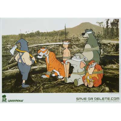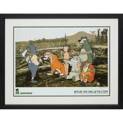 Off-set lithograph on recycled paper, originally commissioned by Greenpeace, and full sheet of accompanying stickers (eight stickers)