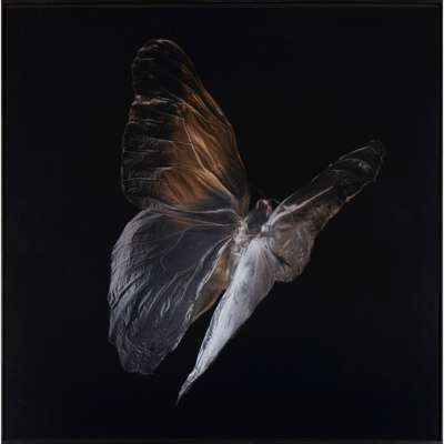 Note: This work was created within a velvet lined tank of highly purified water. It is a remarkably complex and precise process that can take months of set-up just to produce a single photograph, and has taken the artist over a decade to perfect. The butterflies featured are bred by the artist, placed in a state of suspended animation and then delicately placed in the water. Once removed from the water, they will spring back to life unfazed and ready to create the next generation for James to photograph. As quoted in the New Statesman: "James likes leaving viewers “unsettled” and a little unsure of what they are looking at: “Regardless of the size, the subtlety of the works is very much a device used to allow deception to occur. By deception I mean that nine out of ten people that see the works for the first time think they are, in fact, paintings.”