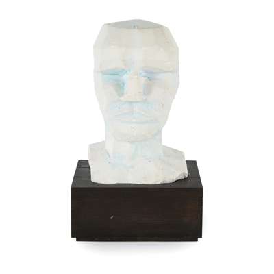 Plaster with blue watercolour wash and bespoke wooden plinth