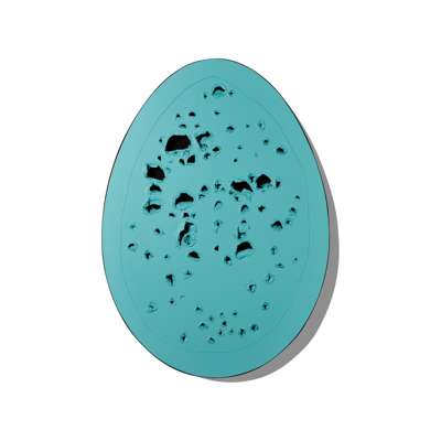 An appropriation of Lucio Fontana's Fine di Dio from his series ‘The End of God’ (1963-4), Holy Egg (Blue) is also an example of Turk’s engagement with recognisable elements from art history. Fontana similarly punctured his egg-shaped canvas in, what he called, a ‘radical gesture that broke the space of the picture’. He claimed that the constellation of holes ‘signify the infinite, something inconceivable, the end of the figurative representation, the beginning of nothing’. As Turk has drawn a single fine line that circumscribes egg, so too did Fontana, thus rendering the work wholly self-contained.
