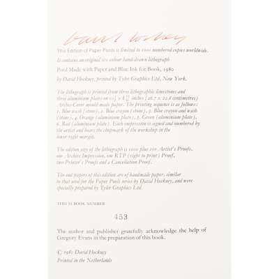 Signed and dated '80 and numbered 453/1000 in pencil, published by Tyler Graphics, Ltd., Mount Kisco, New York, bears blindstamp, on Arches Cover paper, lithograph; Together with 'Paper Pools', the accompanying book, signed by the artist in red ink and stamp numbered 453 on the justification, with blue canvas covers and original slipcase