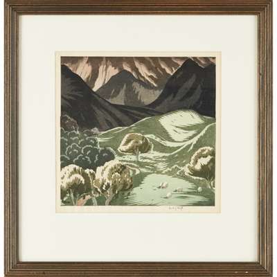 During his long life he built a small collection of works by fellow artists. These included artists whom he knew personally; others, like Bawden, whom he regarded as personal heroes, and others for whom he was the source of inspiration. His acquisitions reflected places he knew, or addressed gardening and music, pastimes which filled his time away from family and art. Above all he knew what he liked, and acquired to reflect this, either by gift or exchange, or from exhibitions, dealers, or auction sales. Lyon & Turnbull are delighted to offer a small group of works from his private collection within this auction.