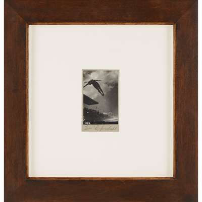 Silver gelatin print of still image from Leni Riefenstahl's 1938 film 'Olympia,' hand-numbered 230 to print, signed in pencil to mount paper
