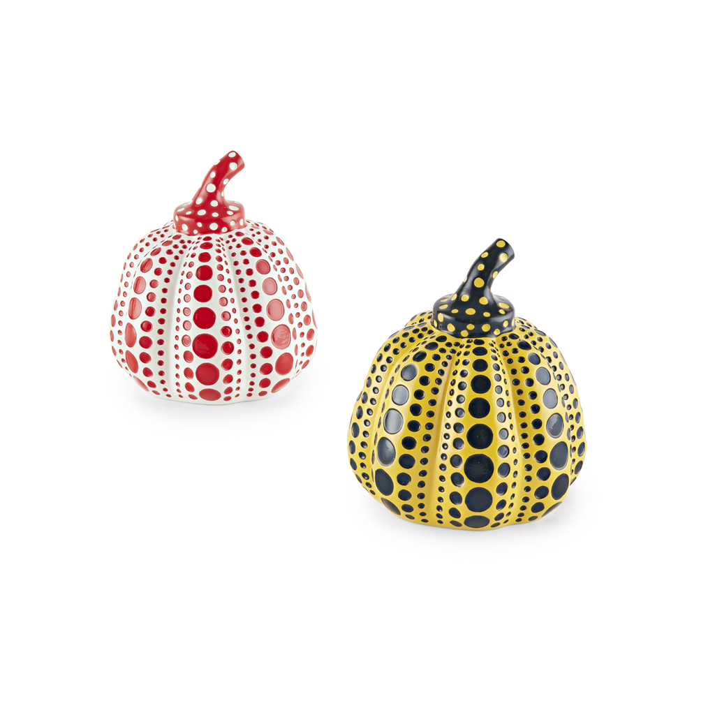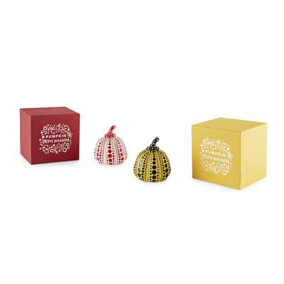 Printed signature to the underside, painted cast resin multiples, both contained in the original paper covered boxes, published by Benesse Holdings, Inc., Naoshima, Japan.