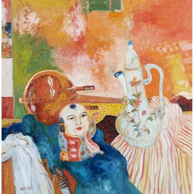 STILL LIFE WITH CHINESE DOLL AND TEAPOT