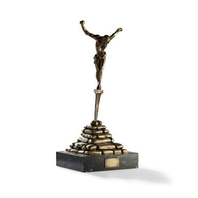 Signed and numbered 63/150, bronze with gold patina, on a marble base