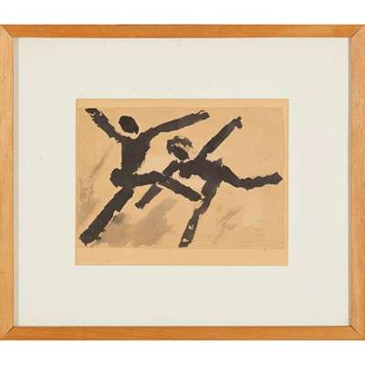 Signed and dated 1982 frame verso, ink on buff-coloured paper