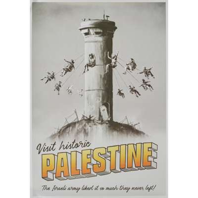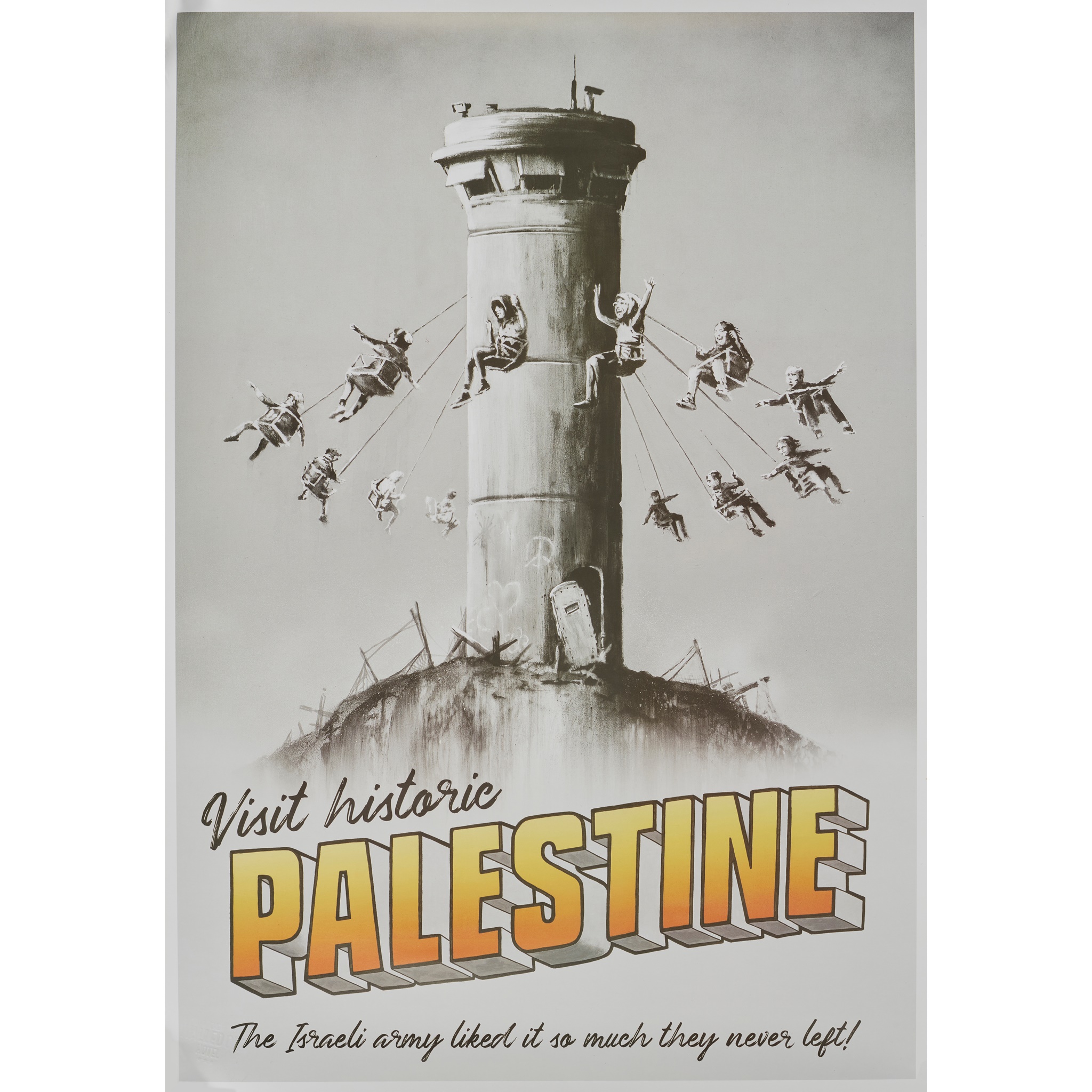 Poster print, with 'The Walled Off Hotel' embossed stamp and the 'The Walled Off Hotel' pink ink stamp verso