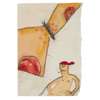 This demanding, uncompromising commitment and all-encompassing focus on her work paid off. She developed and sustained a distinctive, signature style characterised by raw feeling and idiosyncratic lines. Douthwaite was fascinated by historical heroines including Greek deities, Mary Queen of Scots and the aviator Amy Johnson and often depicted them as well as herself. Her images of women remain the most powerful and popular of her works, truly encapsulating the pain and suffering women can experience and endure. This exploration of suffering means there is a violence in the work, yet Douthwaite often manages to retain fun, playful touches in their execution.