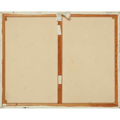 Inscribed with title exhibition label verso, oil and emulsion on canvas