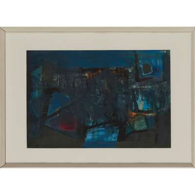 Signed, inscribed with title and dated 1961 artist's label verso, oil on card