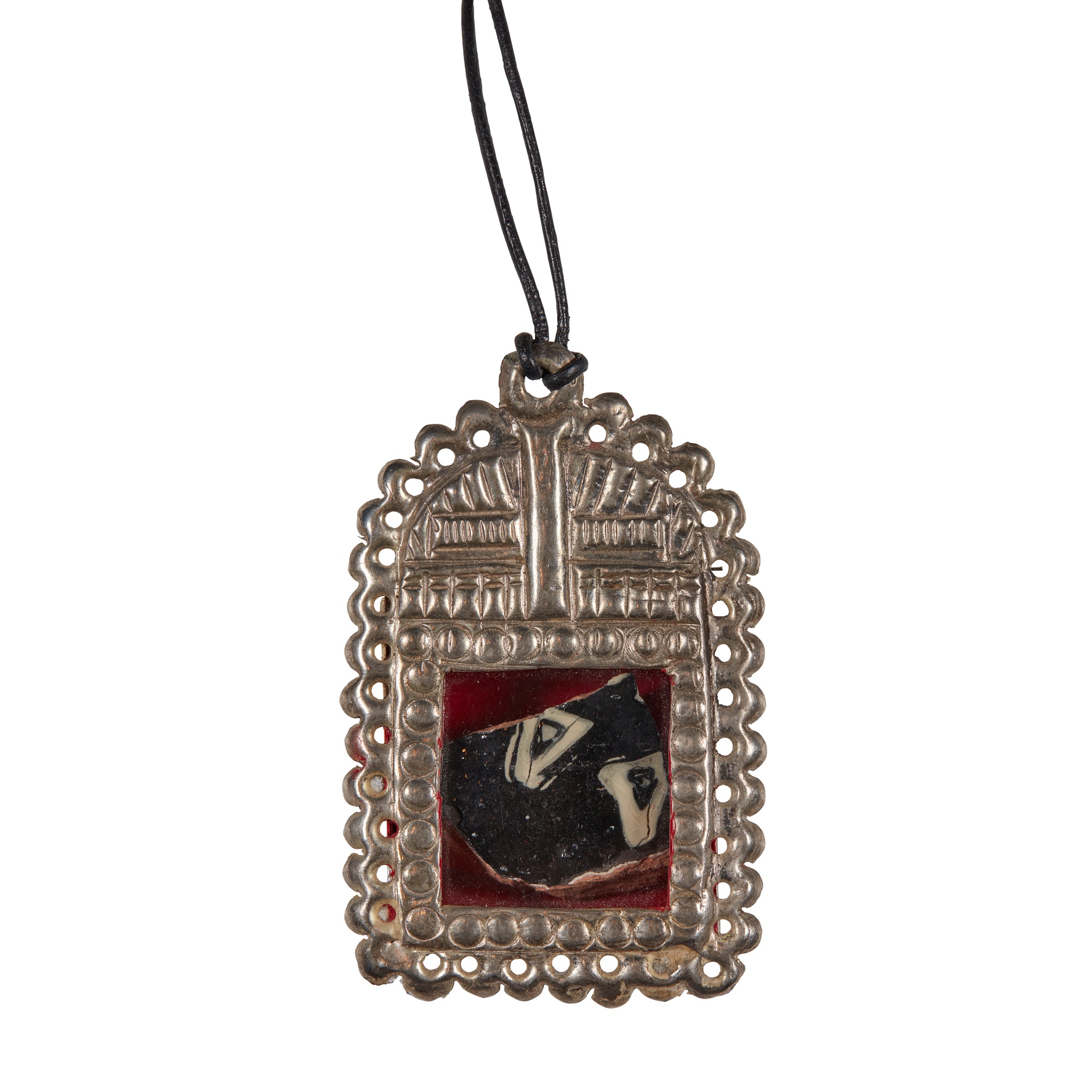2009, ceramic fragment in incised metal pendant on waxed leather string, produced by the artist for Tate Gallery