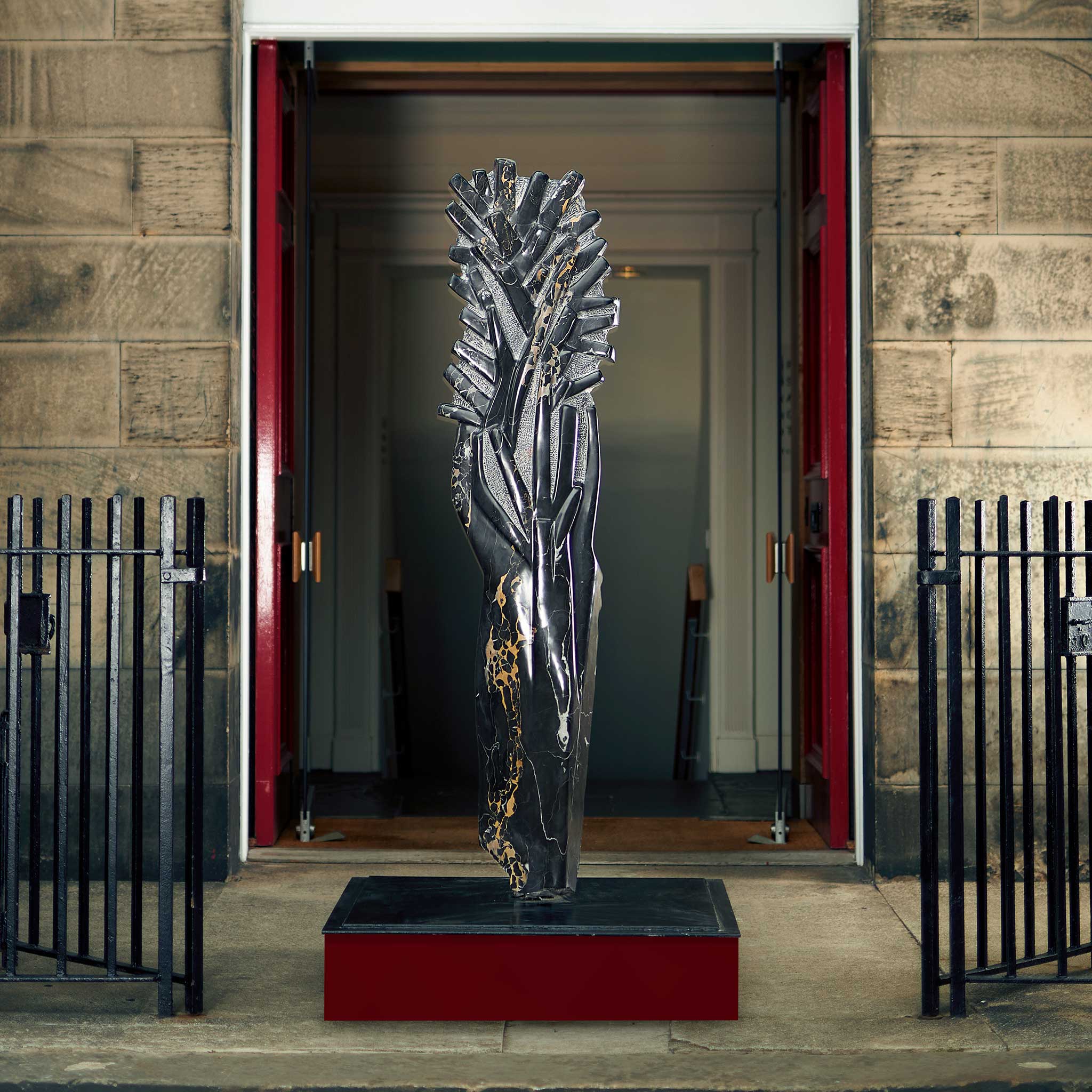 Note: The marble sculpture is called 'FRANCE 1914’ and was designed to commemorate the ending of the First World War. It depicts the last remaining tree on the battlefront but is intended as a symbol of hope.