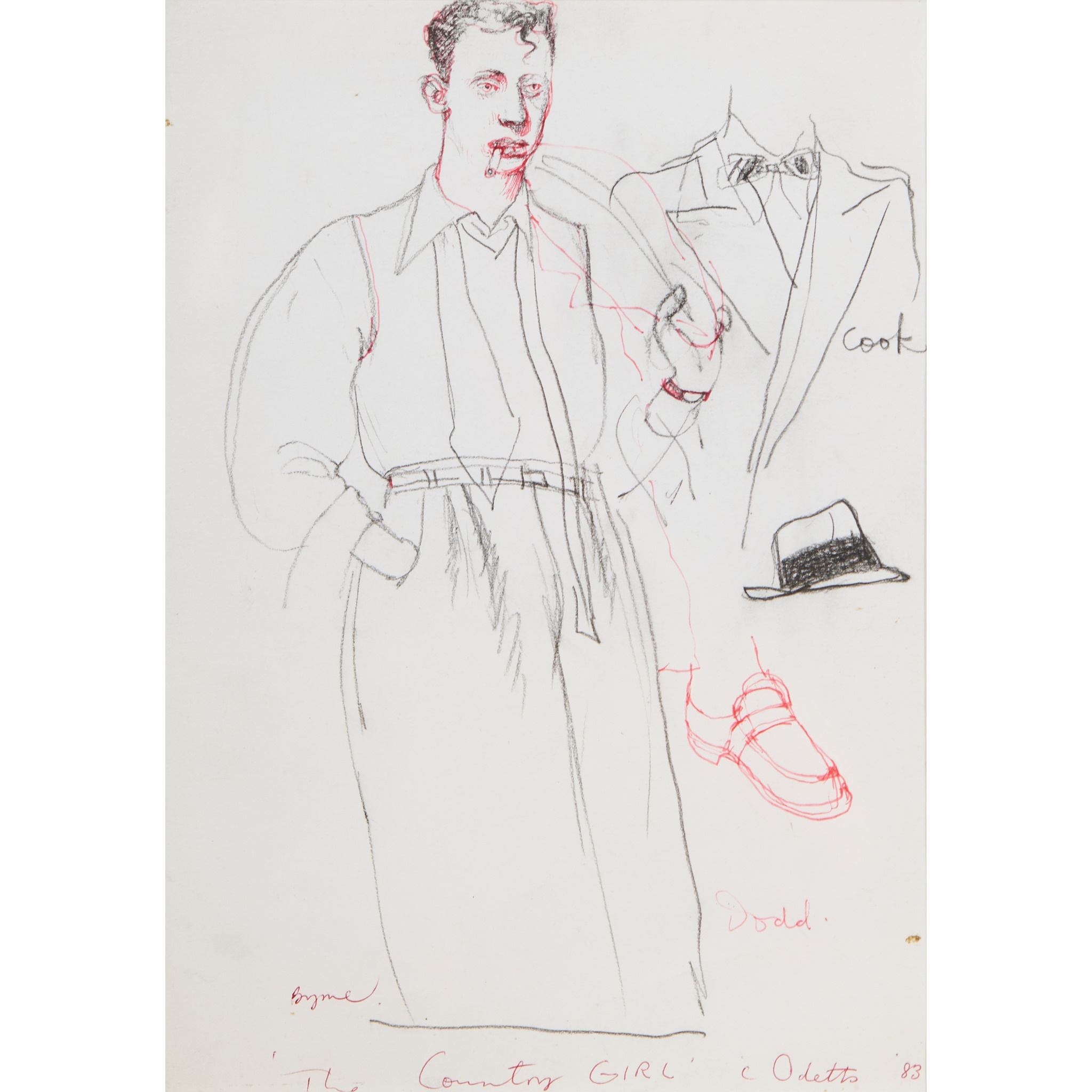 Note: As well as designing the scenery for his own plays, Byrne, in collaboration with director Robin Lefrevre, also designed the settings for Clifford Odets' 'The Country Girl' (Apollo Theatre, 1983), which starred Martin Shaw, whose main character features in these sketches of the clothing by Byrne.