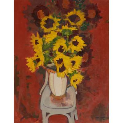 SUNFLOWERS ON A WHITE CHAIR, 2000