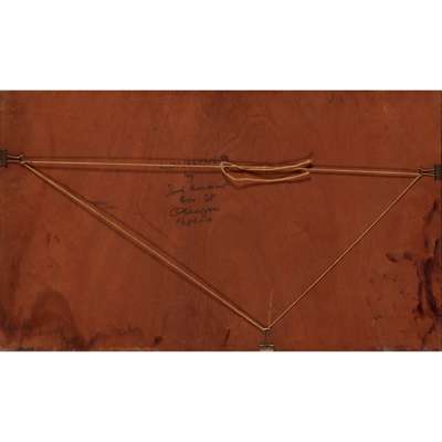 Signed lower right, signed and inscribed with title verso, oil and beads on board