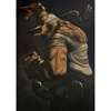‘Face of Britain III’, dates to 1991, and is a significant iteration of this theme. This monumental and muscular ‘Game Boy’ raises his fist in a gesture pitched somewhere between a neo-Nazi salute and the celebratory stance of a football fan or roused member of a street mob. He sports the typical uniform of baseball cap and too-tight t-shirt, a nod of ridicule on Howson’s part, but with sinister “wrist gauntlets that furl out into a threatening combination of football scarf and leather strap”. The figure’s face is contorted into a mask of “swinish hate”, as Heller puts it.