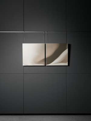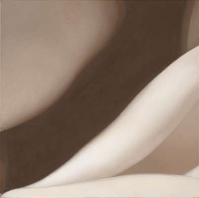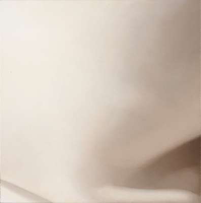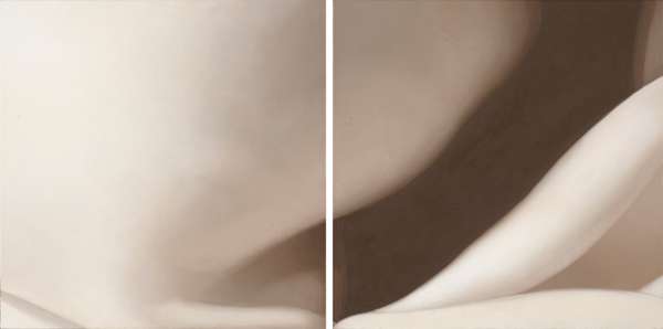 Clarion is a diptych from Watt’s much admired series of works which depict sensuous folds of cloth and the play of light and shadow. These paintings were underpinned by close study of and admiration for the detail of Old Master paintings. Watt has titled this work ‘clarion’, a trumpet-like bugle from the Middle Ages renowned for its clear and shrill tone. The wording both alludes to the rounded funnel of material, reminiscent of the form of a musical instrument, as well as a sense of all that is pure and crisp.