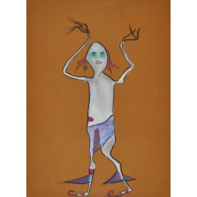 Pastel on brown paper