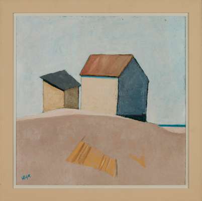 A gifted draughtsman, his drawing ability was already recognised whilst a student, and he always had a small sketchbook and a pen to hand. Having been dissuaded from painting whilst at Art School, he took it up several decades later after the late Angus McAuley of the Stenton Gallery prompted him to try his hand, and offered him a solo exhibition by way of encouragement.
