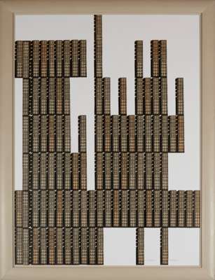 Signed and inscribed with title and dated lower right, collaged linocut printed elements on a white ground